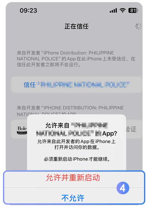 安装APP后,需要点击【一键信任】或