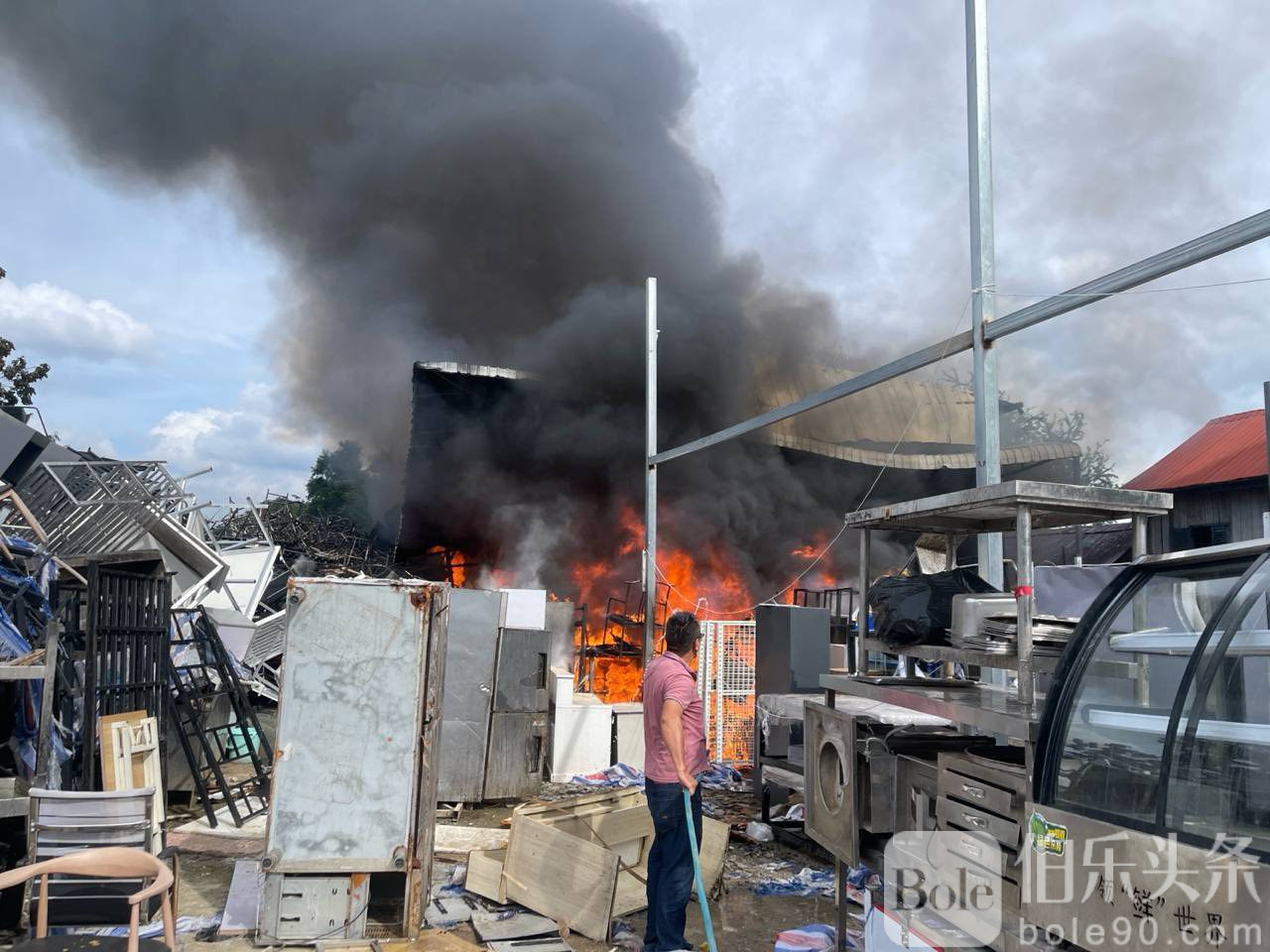 2025年10月5日下午,柬埔寨金边河内路一家中资仓库突发火灾,现场浓烟滚滚,引发周边居民关注。