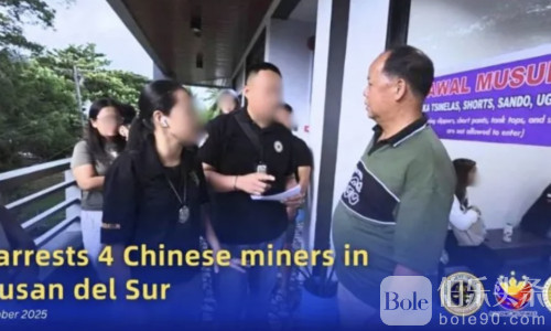 伯乐头条专讯:菲律宾移民局10月6日通报,当局于10月1日在棉兰老岛东北部阿古桑南省圣弗朗西斯科镇(San Francisco, Agusan del Sur)逮捕了4名中国公民,原因是他们涉嫌非法采矿及违反《菲律宾移民法》。