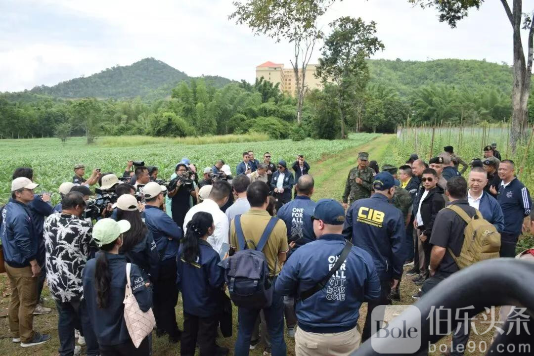 按照原定安排,双方应于10天后,即9月26日再次会晤,确认最终的打击部署。然而,就在会前一天,泰国警方突然采取单方面行动。9月25日,泰国皇家警察总监塔猜率团,携包括中国、印度、日本、韩国、越南、阿联酋及多国执法代表在内的国际观察团,前往泰国尖竹汶府边境地区,远距离“围观”柬方拜林省境内的诈骗园区,并当众表示“泰国不是诈骗基地,问题在柬埔寨”。