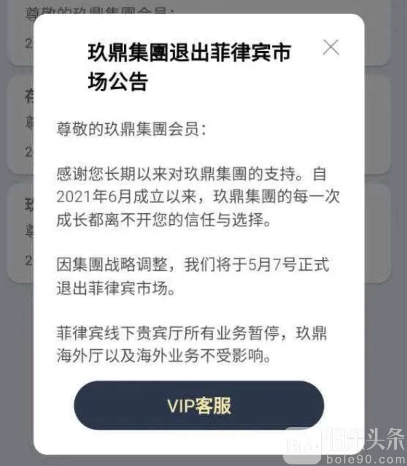 2025年5月6日,玖鼎曾发布公告称“战略调整,退出菲律宾市场”,当时仅关闭线下贵宾厅业务。