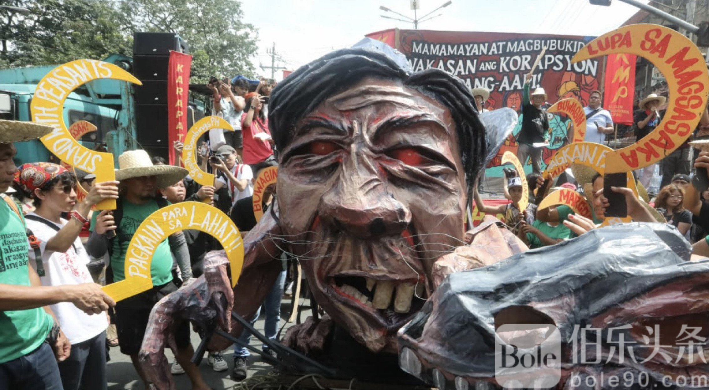 伯乐头条专讯:菲律宾首都马尼拉再现激烈抗议!周二,一群农民团体成员与社会活动人士聚集在博尼法西奥广场(Liwasang Bonifacio),举行主题为“Baha sa Liwasang Bonifacio”(洪水抗议)的示威活动。他们在现场高举标语、呼喊口号,随后点燃了总统费迪南德·“邦邦”·马科斯的小型人像,以此象征对政府的不满与愤怒。