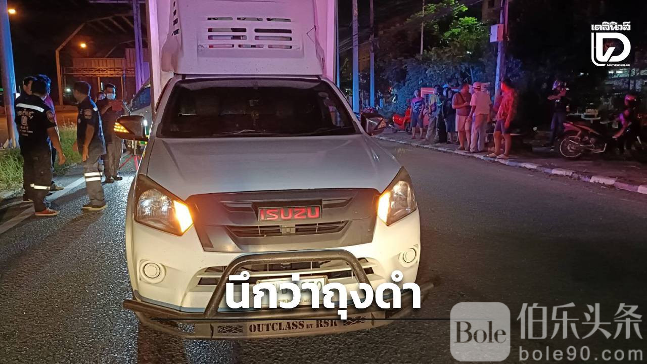 事故发生在凌晨2时45分左右,地点位于巴吞他尼直辖县国立戒毒中心对面路段。警方和救援人员赶到现场时,发现一辆白色伊苏祖箱式货车停在路边,车底卡着死者遗体,头骨碎裂,当场身亡。附近约20米处还倒着一辆被撞毁的白色本田Wave摩托车。