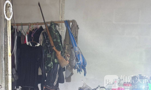 搜查现场时,警方查获1500余粒橙色冰毒药丸9毫米手枪一把、自制步枪一支、部分弹药及一把刀具