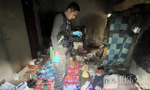 伯乐头条专讯:泰国南奔府惊传缉毒枪战!警方在李县一处龙眼园执行抓捕任务时,遭到毒贩持枪拒捕反击。嫌犯在屋内向警方连开三枪,导致一名警员中弹受伤。随后警方回击,将毒贩当场击毙。