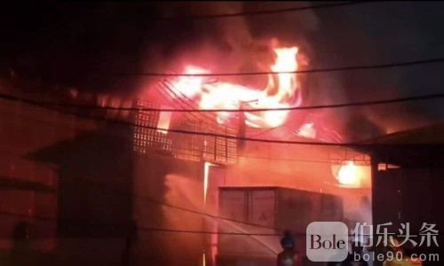 伯乐头条专讯:11月6日凌晨,泰国曼谷拉差布拉那区一处仓库突发大火,现场火光冲天并伴有多次爆炸声,黑烟滚滚,方圆数公里可见,消防员紧急出动扑救。