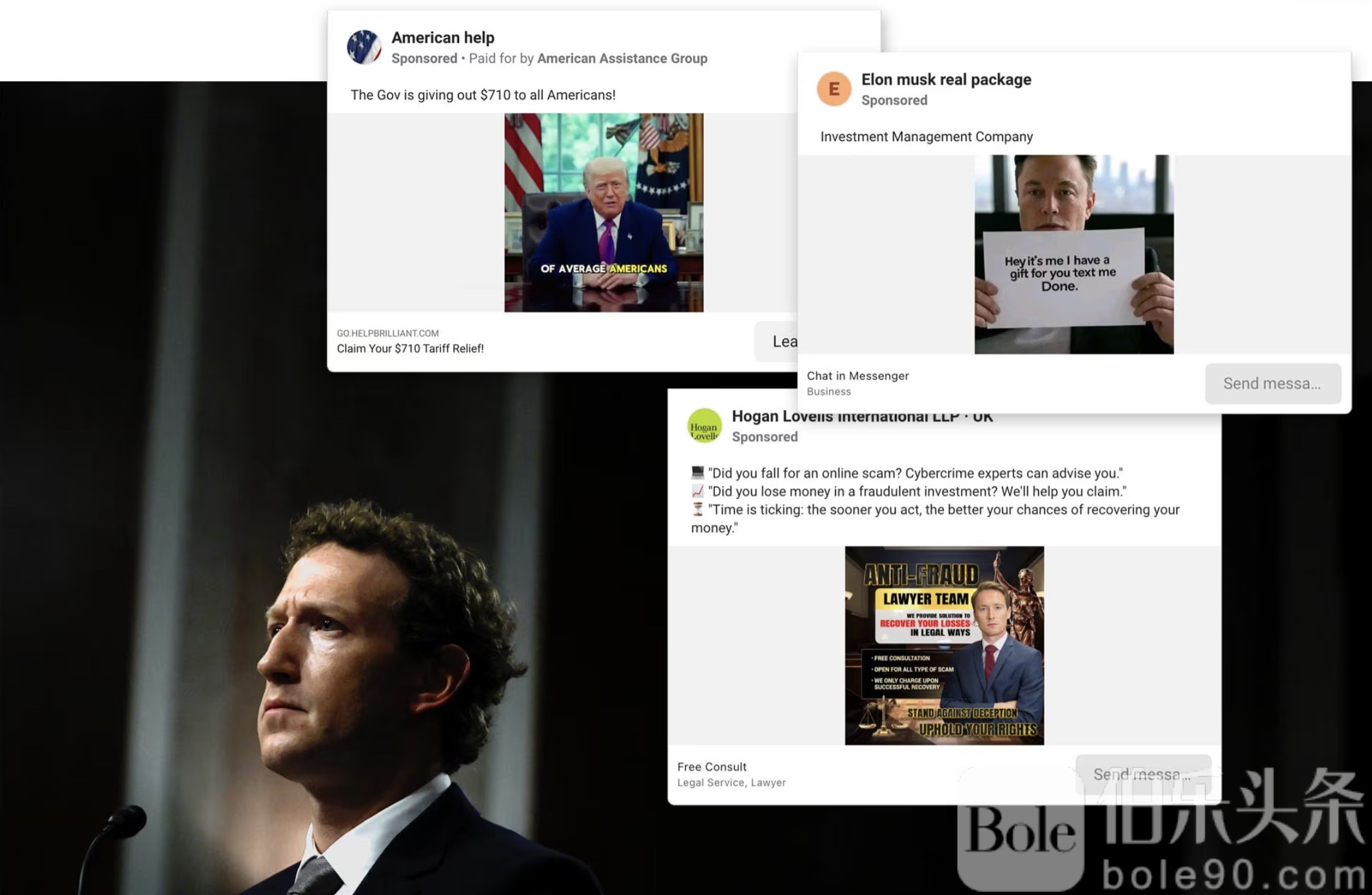 伯乐头条专讯:社交媒体巨头Meta(Facebook母公司)再次陷入全球风暴。路透社曝光的一份内部文件显示,Meta高达10%的年收入或来自诈骗与非法广告,包括线上赌博和假冒商品推广,按近年营收计算,相当于约160亿美元。该消息震动全球,多国政府已对Meta展开调查。