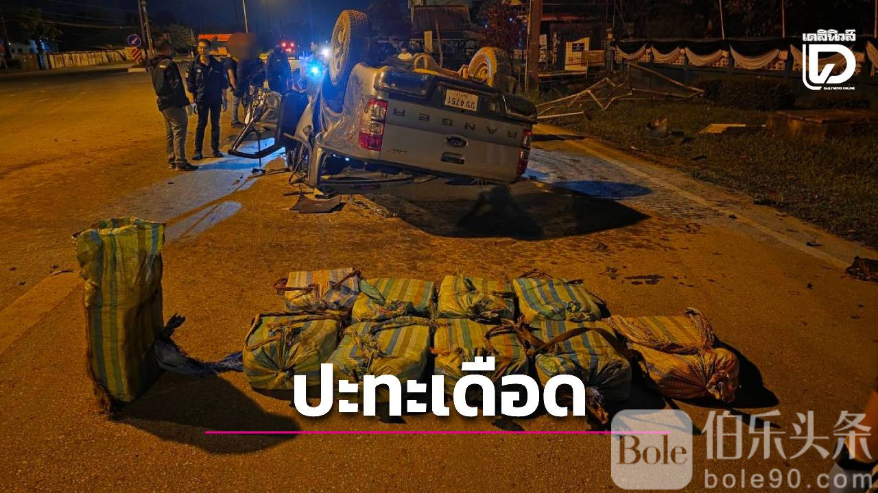 警方透露,行动由边防警察总部指挥,情报显示毒贩准备从“帕绵-湄占”路线将大批毒品运入境内。特警设卡拦截时,一辆灰色福特皮卡拒检加速逃逸,并向警方开枪射击,场面一度火光四起。警方回击后,毒车最终在“班三贡学校”前翻覆,现场查获装满毒品的彩虹麻袋10袋,重达200公斤。