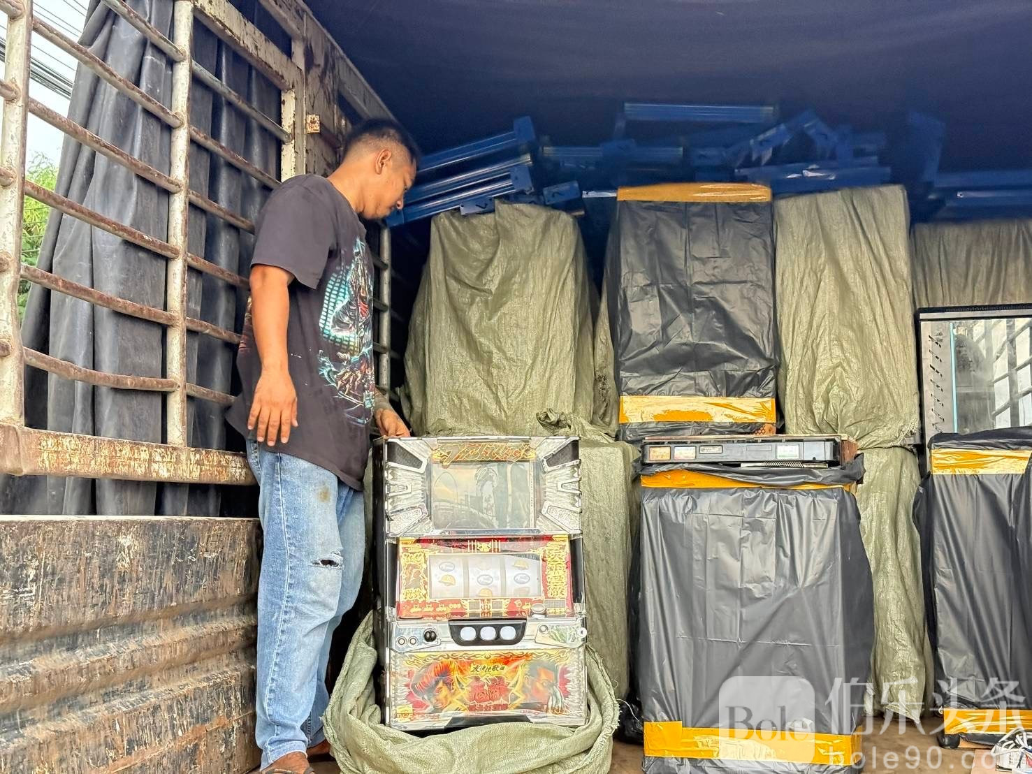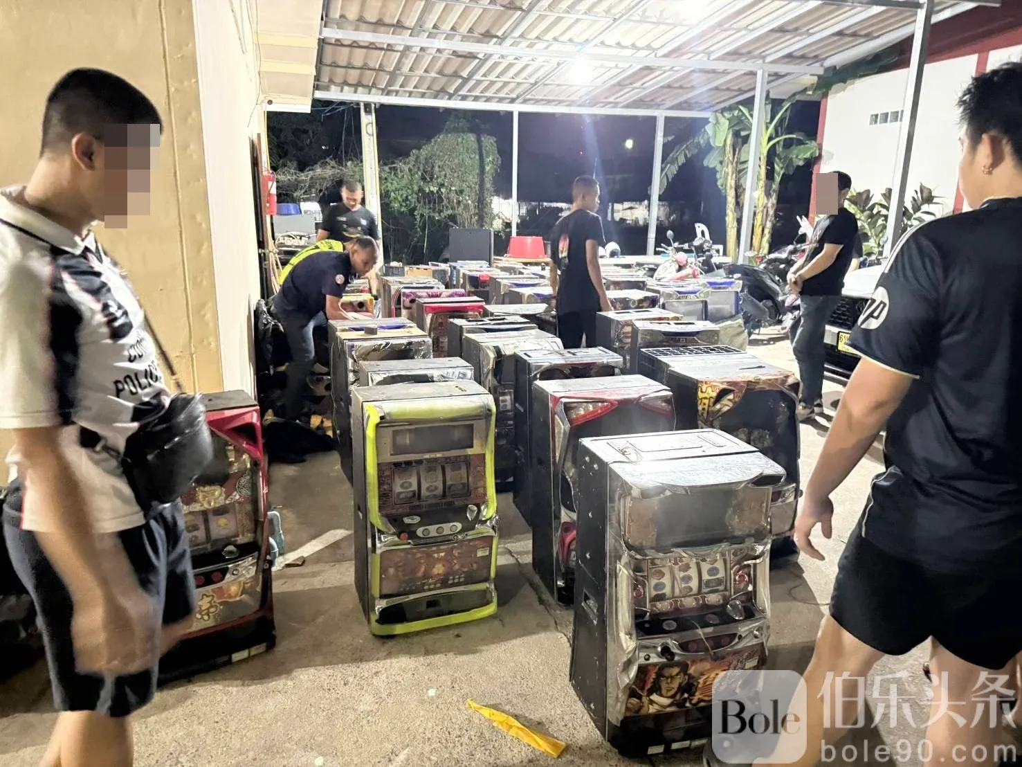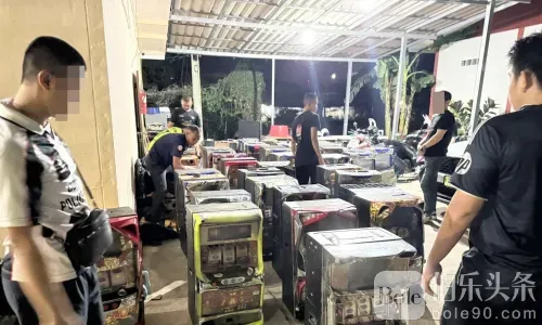 伯乐头条专讯:泰国警方近日在春武里府梭桃邑区破获一处藏匿老虎机的仓库,当场逮捕多名中国与泰国籍嫌疑人,并查获49台电动赌博机及多件电子设备。警方怀疑该团伙与境外电诈集团有关,疑似正准备在泰国设立新据点。