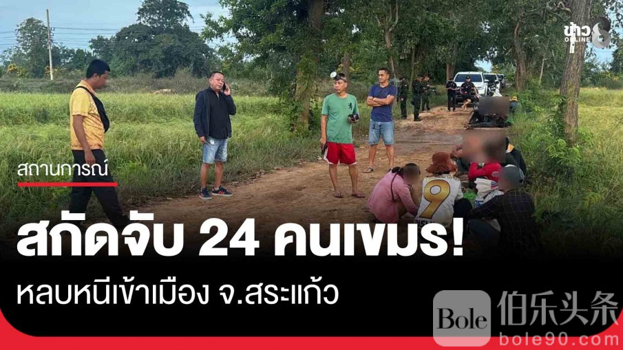 伯乐头条专讯:泰国萨拉开府(Sa Kaeo)警方与当地治安、边防及军方联合行动,于11日成功拦截24名企图非法入境的柬埔寨籍人员,事发地点位于塔帕雷亚区(Ta Phraya)的Ban Makok农业路段。