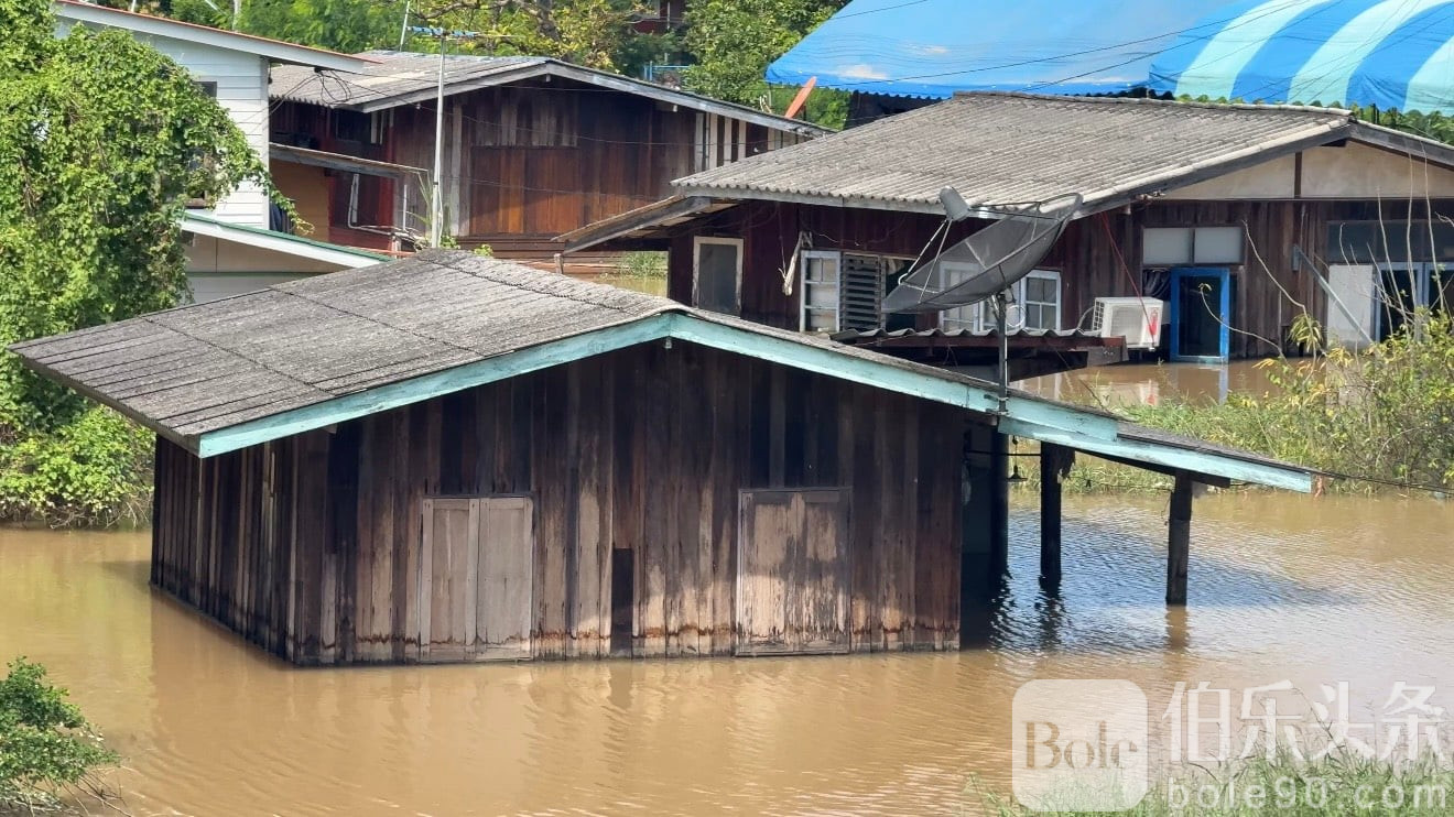 伯乐头条专讯:泰国阿育他亚府(Ayutthaya)บางบาล镇及周边地区近期遭遇持续强降雨,引发查奥普拉河(Chao Phraya River)水位大幅上涨,多条主要道路被淹,居民生活受到严重影响。据当地居民反映,本次洪灾水位高达3至4米,部分民宅水淹至二楼,是近年来最严重的一次。尤其是连接阿朗通府(Ang Thong)府的朱拉玛尼桥(Chulamani Bridge)附近,水流溢出河堤,车辆无法通行,交通中断给民众出行带来极大不便。