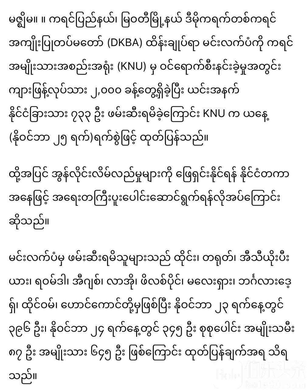 伯乐头条专讯:缅甸克伦邦传出最新消息,顺达园区(Shunda)所在区域遭克伦民族联盟(KNU)突袭后,园区内共有约2,000名电诈从业人员被发现,其中733名外籍人员已被拘捕。