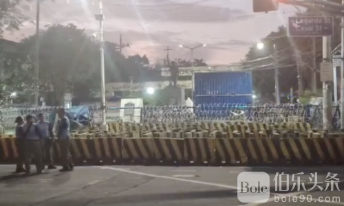 伯乐头条专讯: 菲律宾马尼拉门迪奥拉街30日清晨起进入高度戒备状态,大批警力、铁丝网、混凝土障碍物与集装箱被层层布设,严密封锁通往马拉坎南宫的要道。当天,马尼拉及大马尼拉地区多地均举行反贪腐示威活动,警方为防止重演先前冲突,提前加强部署。