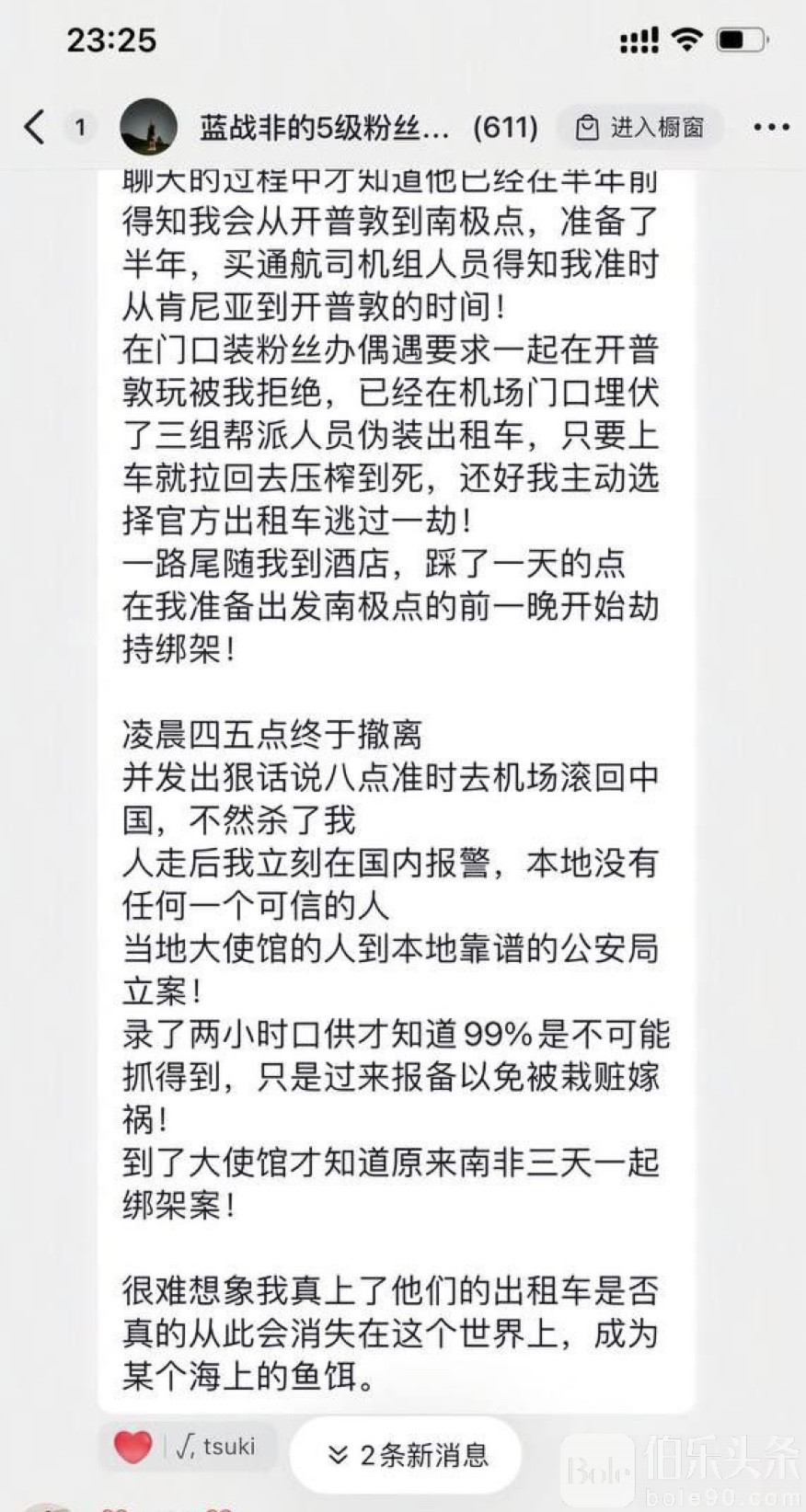 更令人惊骇的是,这起绑架事件早在半年之前就被策划完成。绑匪掌握蓝战非从开普敦前往南极点的行程,通过机场和航司机组人员获取精确信息,在多地设置“粉丝偶遇”伪装,并在机场门口布控三组伪装出租车的帮派,只要上车就会被带走继续压榨。幸运的是,蓝战非果断选择官方出租车,成功脱险。