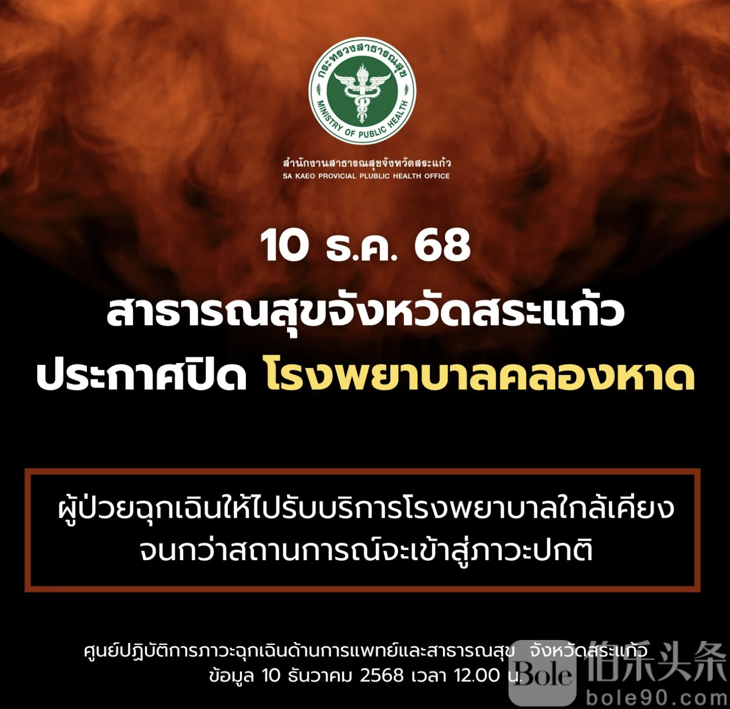 沙缴府公共卫生局局长 帕拉蓬·约实琳达医生 表示,目前三家临时关闭的医院分别为——高松医院、达帕耶医院和孔哈医院。虽然医院并未遭到直接破坏,但附近区域持续传出炮击与交火声,为确保医护人员和就医民众安全,只能先暂停服务。