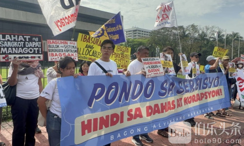 伯乐头条专讯:在2026年国家预算两院协商委员会(Bicam)会议即将登场之际,菲律宾左翼联盟“爱国新联盟”(BAYAN)12月13日中午抢先走上街头,在帕赛市菲律宾国际会议中心(PICC)外发起抗议行动,矛头直指被指“漏洞百出”的防洪工程项目与潜藏其中的贪腐风险。