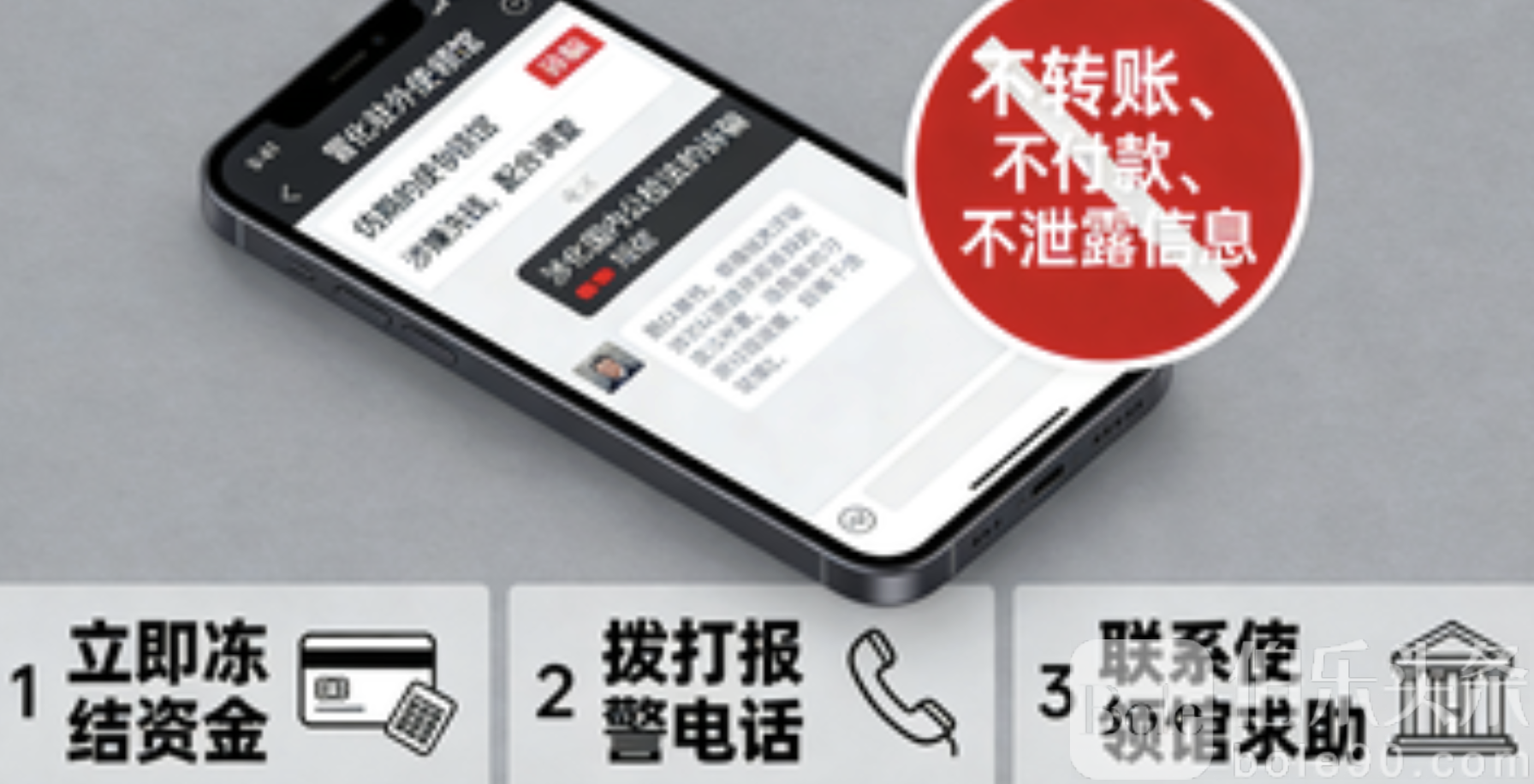 高度警惕冒充驻外使领馆、国内公检法等名义的诈骗电话、短信或网络信息,不转账、不付款、不泄露个人信息。如受骗及时冻结资金、报警并向使领馆求助。避免私下换汇或交易,使用合法渠道确保财产安全。