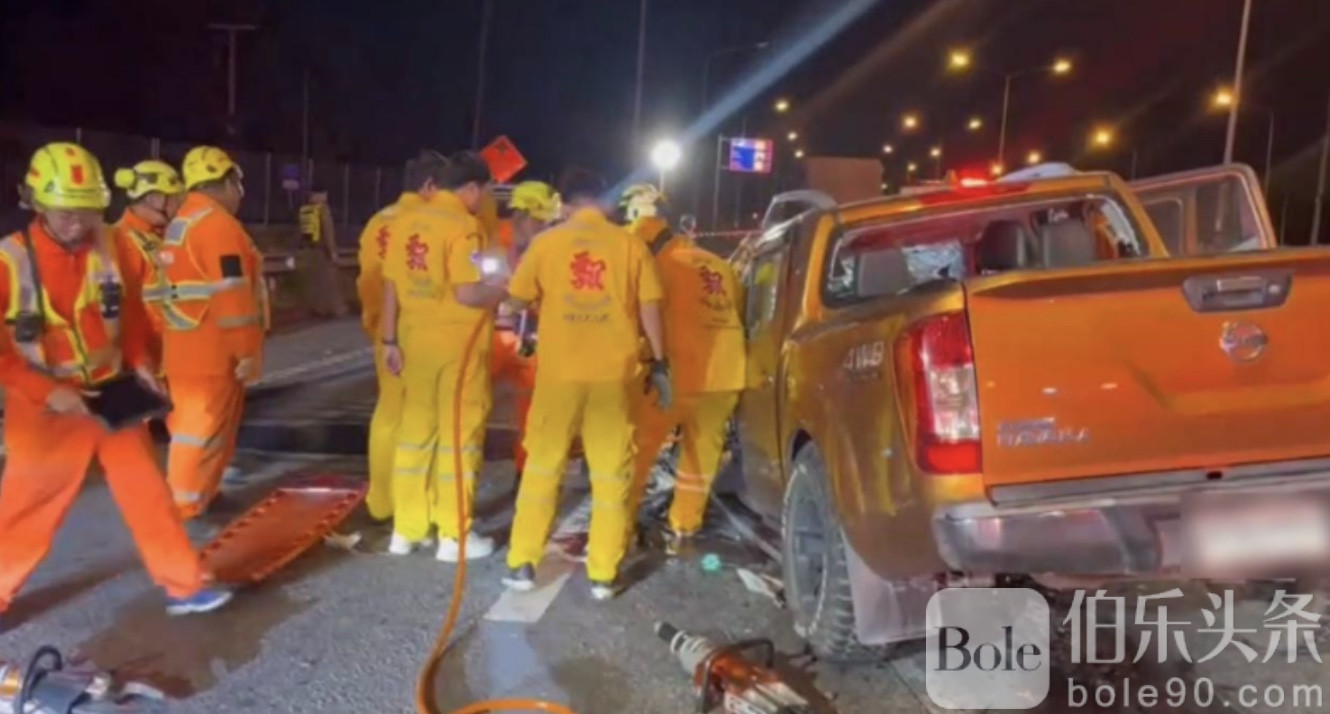 事故发生在摩托路90+400公里处,靠近春武里府Bang Phra地区。当地警方和救援人员迅速赶赴现场,发现皮卡车车身严重变形,车内共5名乘客,其中死者包括34岁的司机Natsit、39岁的Supawadee、48岁的Narong以及一名约50至60岁的男性,均未携带身份证明。唯一幸存的50岁男性Sutheera被紧急送往Laem Chabang医院救治。