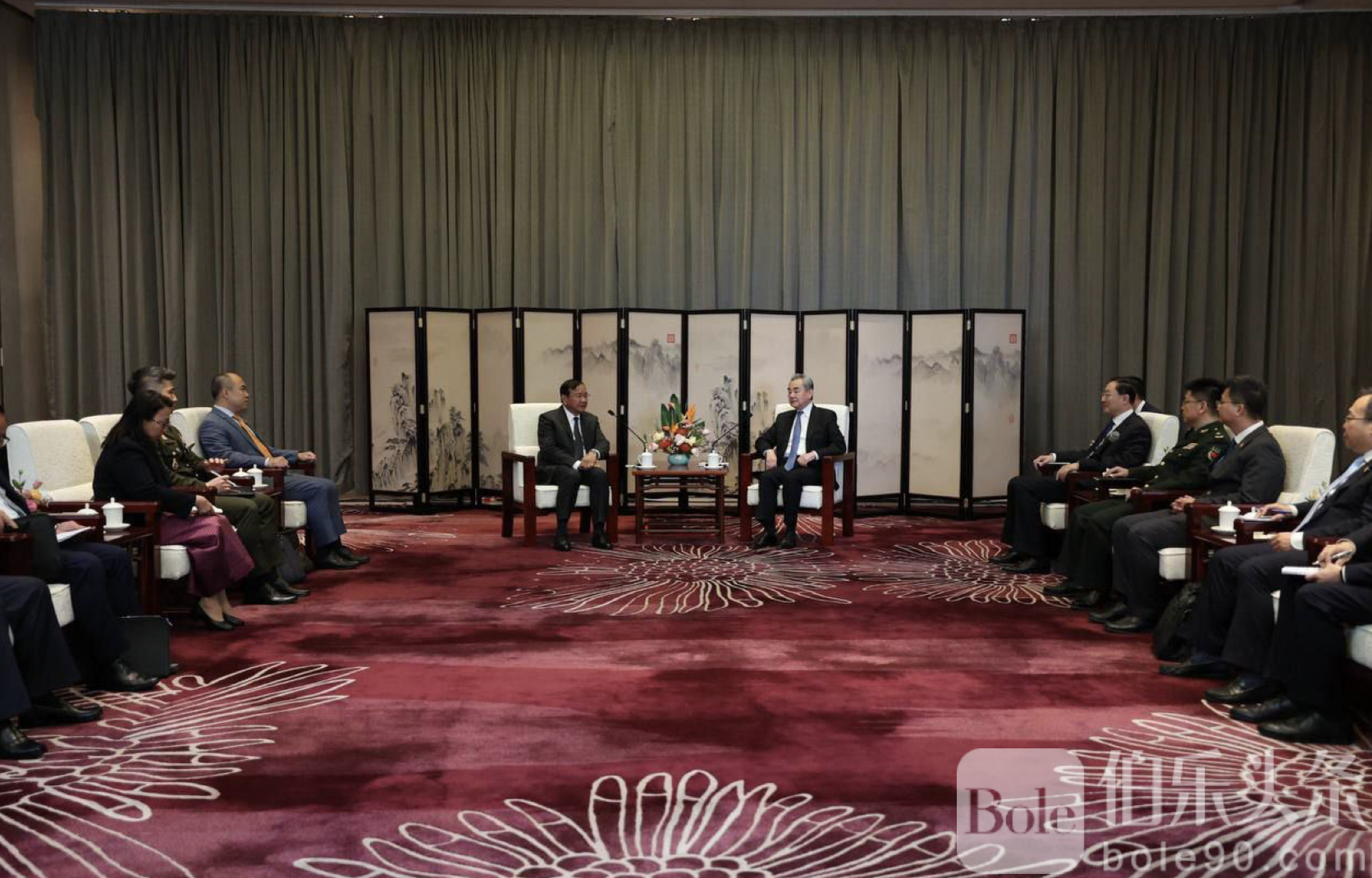 伯乐头条专讯:柬埔寨副总理布拉索昆今日在云南省与中国外交部长王毅举行双边会谈,双方就深化柬中合作、巩固战略伙伴关系进行了深入交流,旨在推动地区与全球的和平、安全、稳定及可持续发展。