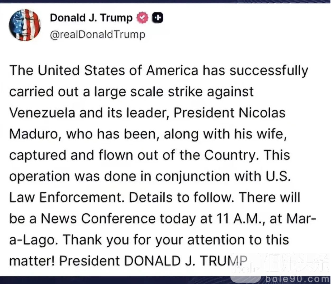 伯乐头条专讯:一声令下,美军行动。