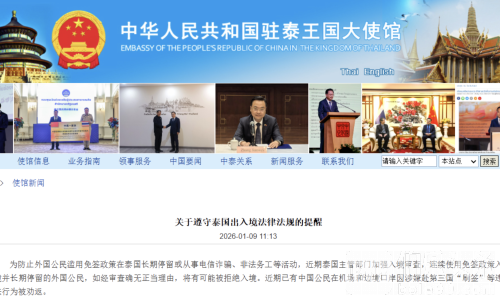 中国驻泰国大使馆1月9日提醒所有计划前往泰国的中国公民,一定要严格遵守泰国的出入境法律法规。根据你真实的访问目的去申请相应类型的签证,千万不要从事与签证类型或入境目的不符的活动。出发前,记得提前准备好在泰国的行程安排、往返机票、酒店预订凭证等,以备检查,避免出入境受阻。要经过柬埔寨进入泰国,最好选择乘坐飞机。遇到紧急情况,请及时报警,并向中国驻泰国使领馆寻求帮助。