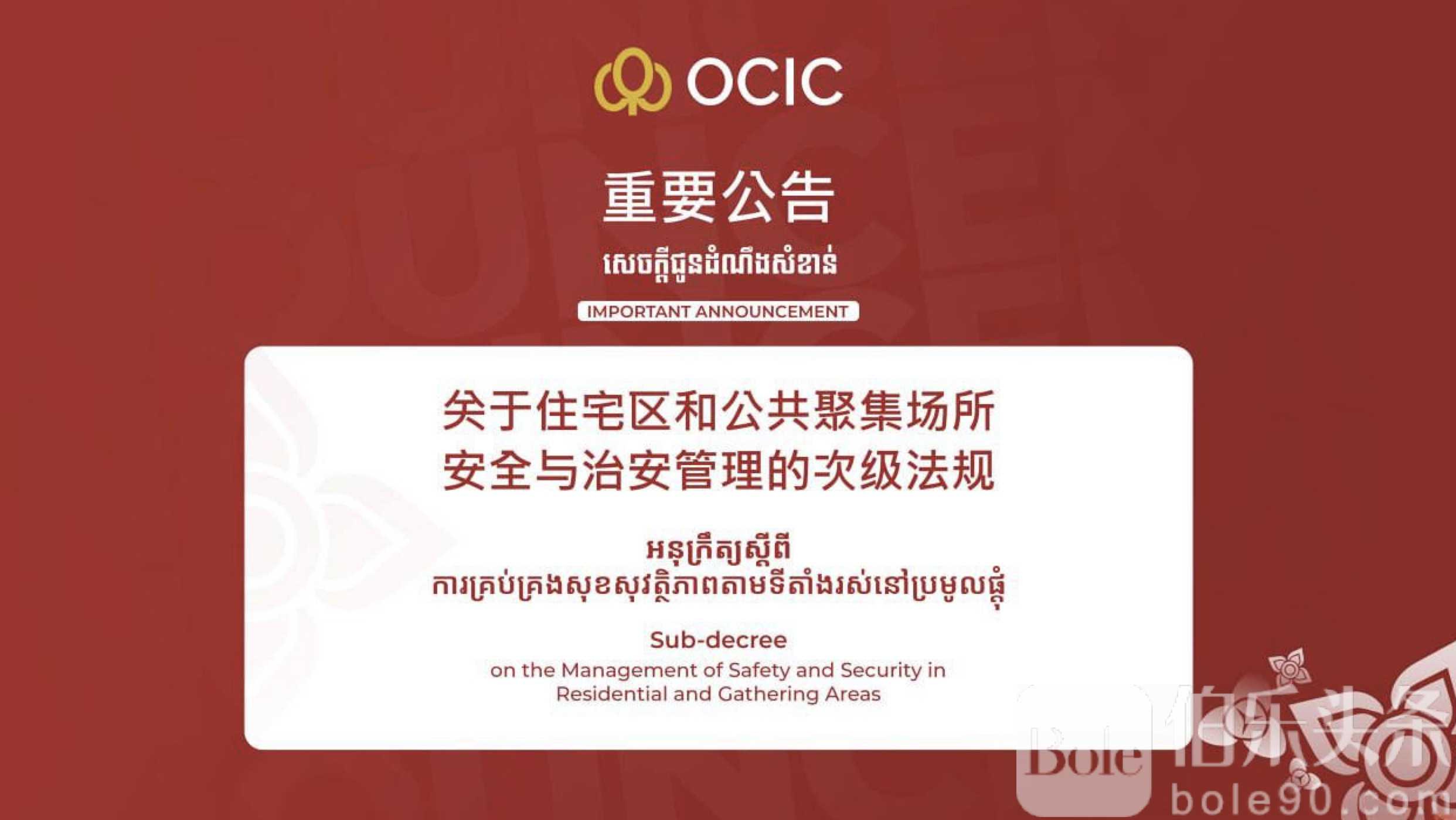 伯乐头条专讯:柬埔寨大型综合开发商海外柬华投资公司(OCIC)于1月15日对外发布公告,重申并细化已于2026年1月正式生效的《集体住宅区安全与治安管理次级法令》,明确在旗下多个核心项目内,对网络赌博、电信诈骗及一切相关非法活动实行“零容忍”。