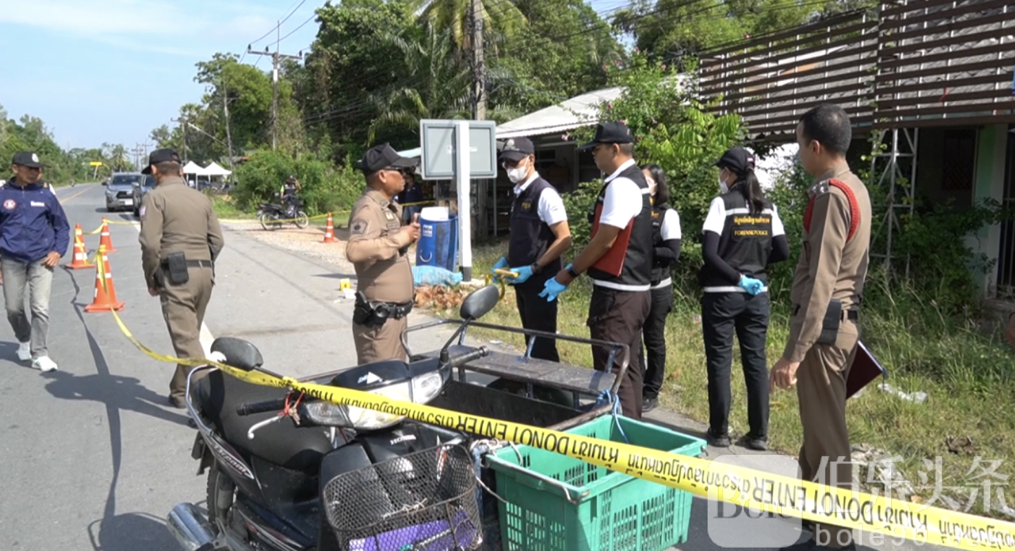 伯乐头条专讯:泰国普拉汶府消息,当地时间1月16日上午8时30分,普拉汶府邦盖县纳帕科乡(Ban Na Pakho)发生一起枪击致死事件,受害人为51岁男子詹诺(Chamnong,音译),事发时他正驾车送早餐给病重卧床的母亲。警方在现场发现血迹、鞋子、一辆本田三轮摩托车及四枚11毫米弹壳。詹诺当场被紧急送医,但因胸部中四枪,抢救无效死亡。