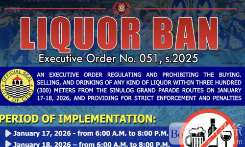伯乐头条专讯:为确保一年一度的圣婴节(Sinulog)大巡游安全、有序进行,菲律宾宿务市政府宣布,将在巡游前一天及活动当天,对相关区域实施临时禁酒措施。宿务市市长内斯托·阿奇瓦尔(Nestor Archival)已正式签署第051号行政命令,对巡游沿线周边实施酒类销售与饮用限制。