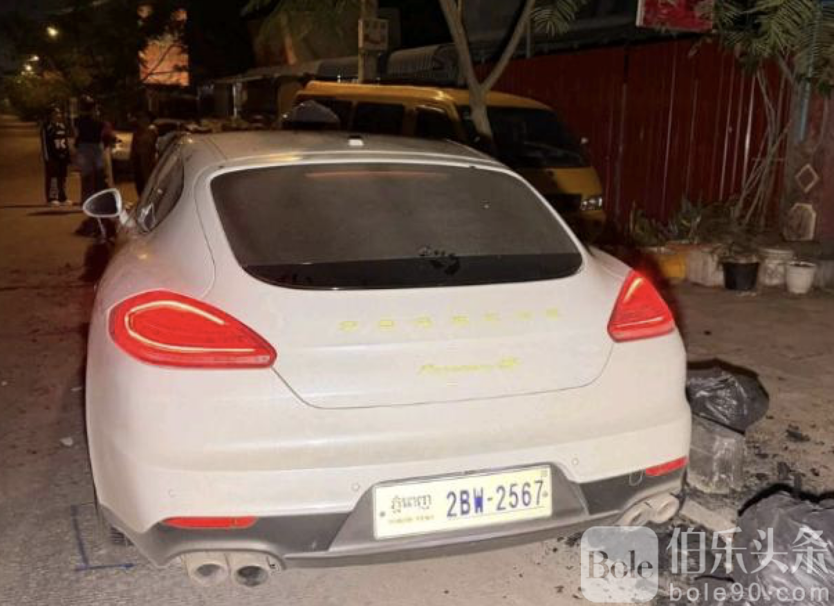 伯乐头条专讯:金边市朗哥区凌晨发生连环车祸,一名中国籍男子驾驶白色保时捷轿车追尾路边木炭运输拖车,冲击力使拖车撞上前方停放的丰田轿车,导致三辆汽车严重受损。事故发生在当地时间0时30分的混凝土公路上,所幸三车当时均无人驾驶,无人员伤亡。