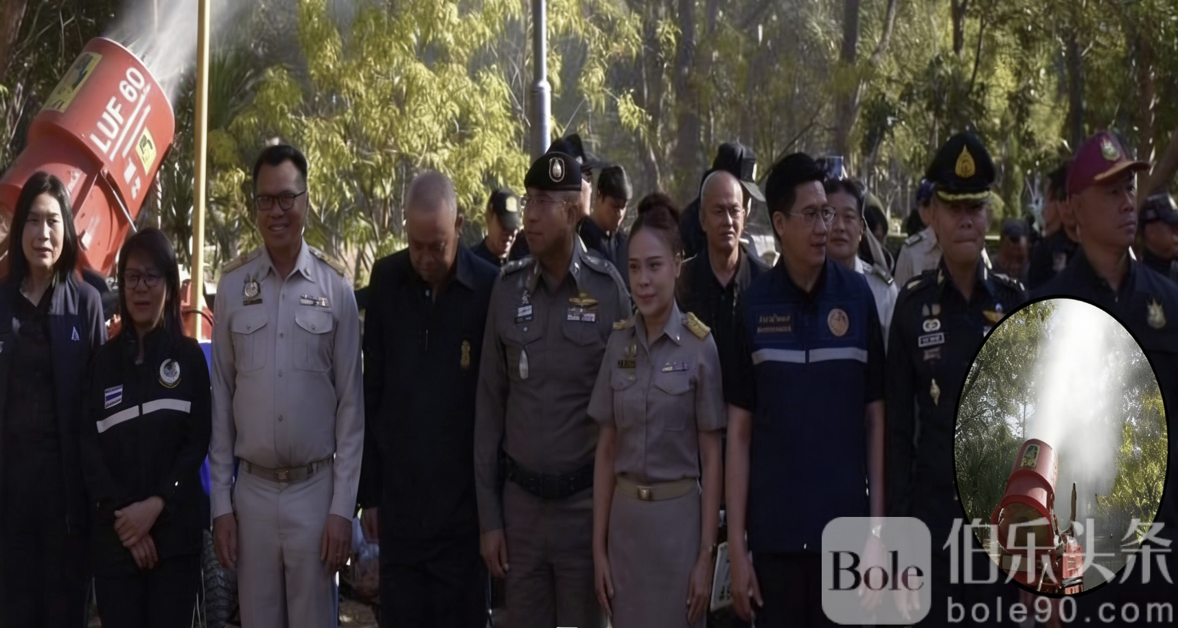 伯乐头条专讯:清迈近日全面出动措施应对空气污染问题,市政府通过洒水降尘、浇灌植被等行动,全力缓解PM2.5雾霾危害。1月19日,清迈省省长拉塔波恩·纳拉迪松亲自带领各级政府部门和相关单位,在省政府办公大楼前启动防霾行动,旨在通过提高环境湿度、降低空气粉尘浓度,保护市民健康。