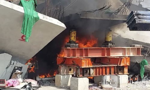 伯乐头条专讯:泰国曼谷拉玛二路近日再次发生施工事故惊魂,原本已坍塌的吊车残骸在1月20日凌晨再次起火,浓烟和火光从残骸中冲天而起,引发周边居民和过路民众恐慌。