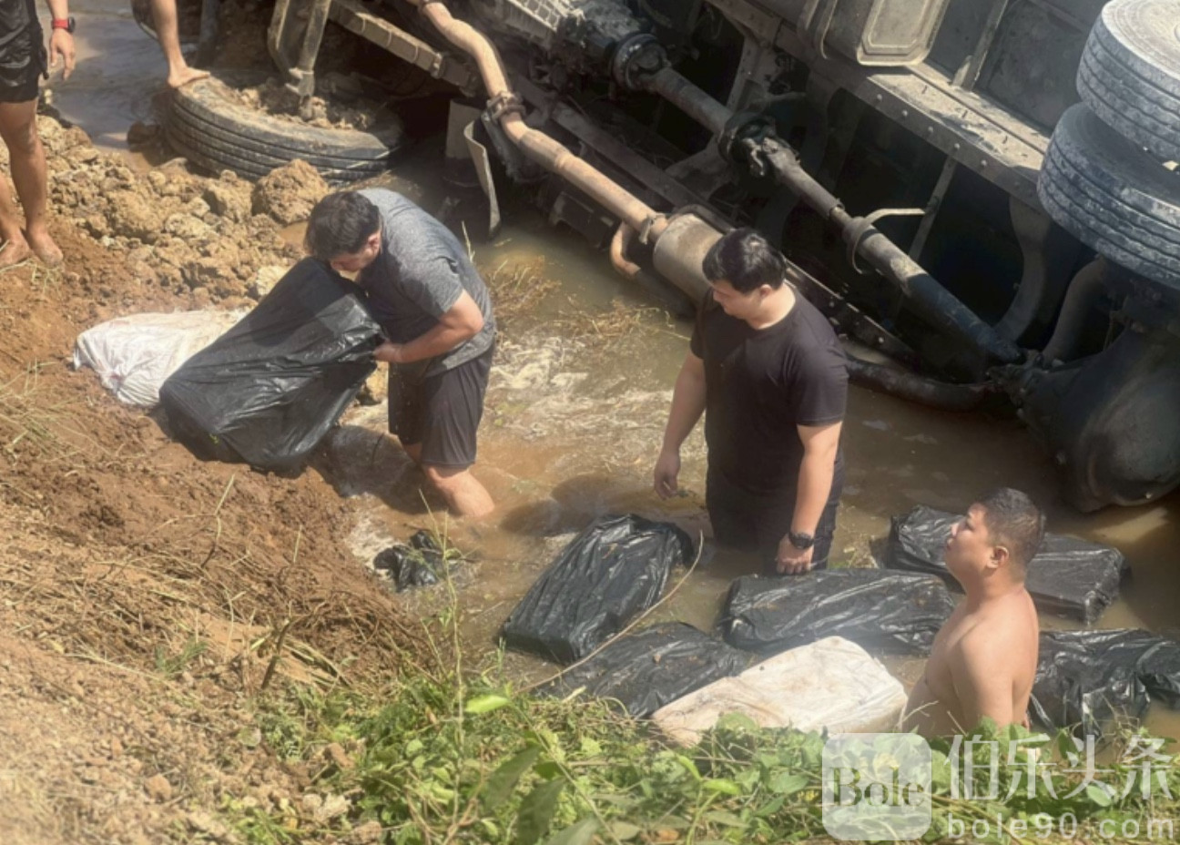 伯乐头条专讯:一辆看似普通的10轮货车,却暗藏惊人数量的毒品。泰国警方近日成功截获一宗大型毒品运输案件,查获甲基安非他命(俗称“疯药”)约479万粒,涉案总值高达1.5亿泰铢。为逃避追捕,司机一度驾车冲入运河试图脱身,但最终仍难逃法网。