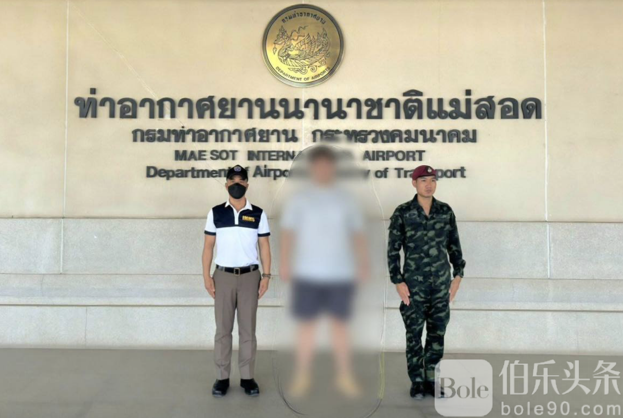伯乐头条专讯:泰国持续加强对外国人非法居留行为的执法力度。当地时间1月27日下午,泰国达府移民局联合当地安保部门,在湄索机场成功查获一名逾期滞留的中国籍男子。经查,该男子在泰国的居留许可已超期401天,情节严重。
