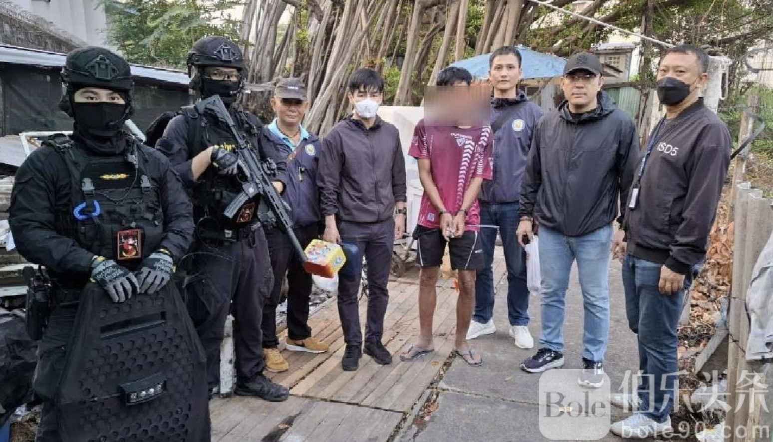 此次行动在曼谷大都会警察总部高层直接指挥下进行,警方经过长时间跟踪调查、分析资金流向与人际网络后,成功取得南曼谷刑事法院签发的搜查令。执法人员随后对位于素坤逸四十六巷、三十七号酒店后方的一处无门牌单层木屋展开包围与搜查。