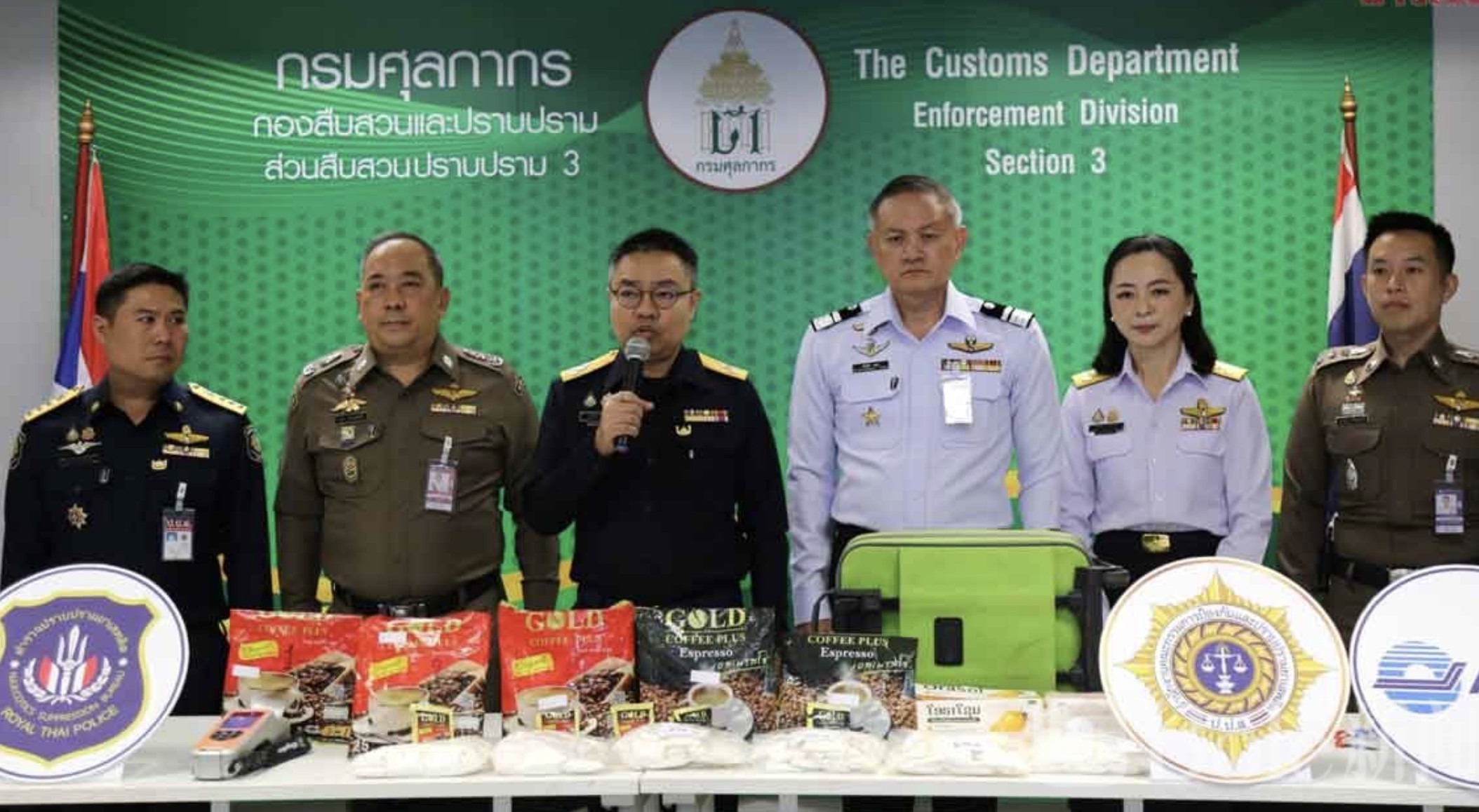 执法人员在5个大型咖啡包装袋及2盒电解质补充品中,发现被刻意伪装的海洛因,总重量约4,815克,黑市估值高达144万泰铢。相关人员随即依法将嫌疑人控制,并移交移民及司法系统,后续将按泰国相关法律追究刑事责任。