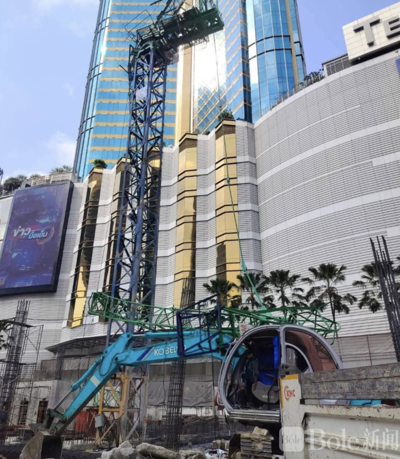 Bole新闻专讯:2月7日上午10时27分,曼谷อโศก区(Sukhumvit 21)一处工地发生严重意外,一台塔吊臂突然断裂坠落,压伤两名工人,现场情况十分危急。