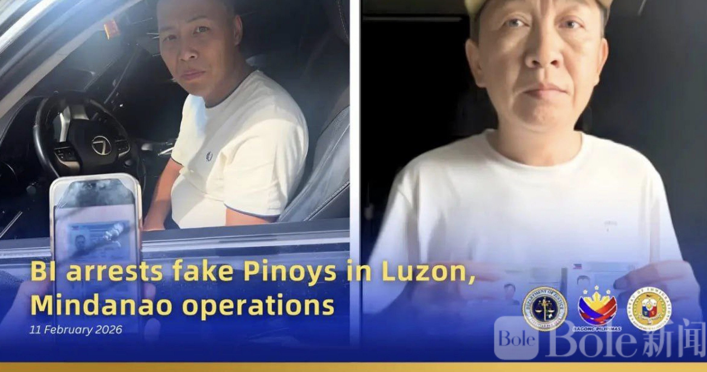 Bole新闻专讯:菲律宾移民局(BI)近日在吕宋与棉兰老两地展开同步执法行动,逮捕两名涉嫌长期冒充菲律宾公民身份的中国籍男子。执法人员指出,两人分别通过不同方式“包装”身份,试图以菲律宾人名义获取证件、从事商业活动,最终被情报部门锁定并抓捕。