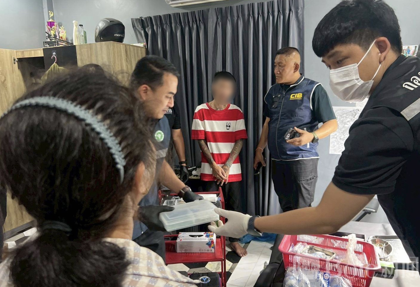 Bole新闻专讯:泰国警方近日在春武里府ศรีราชา(Sriracha)突击抓获一名38岁的男子ธนัท,他自称“ช่างบิว โมดิฟาย”,在家中非法提供男性性器改造服务,包括植珠、注射增大及其他微整操作。警方缴获一整套工具和材料,包括683颗玻璃珠、5盒填充剂、各类手术刀具与注射器等。