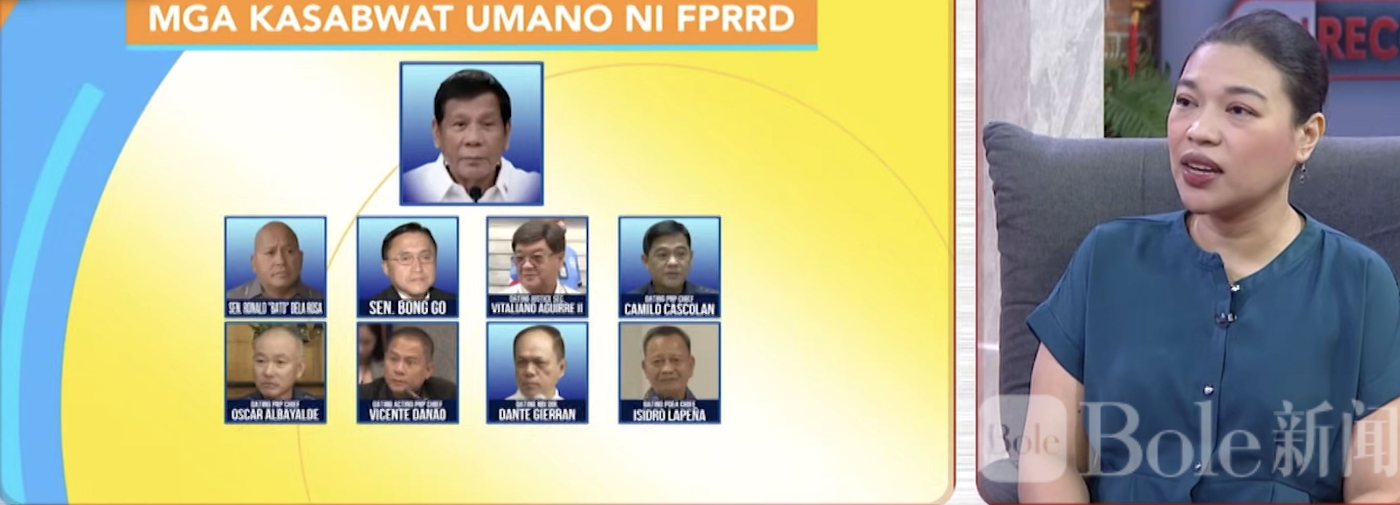 Bole新闻专讯:菲律宾国际刑事法院(ICC)助理律师克里斯蒂娜·康蒂(Kristina Conti)周一表示,被列为前总统罗德里戈·杜特尔特涉嫌“反人类罪”案的共犯,并不意味着会自动遭到逮捕,是否采取行动完全取决于ICC检察官的策略和裁量权。