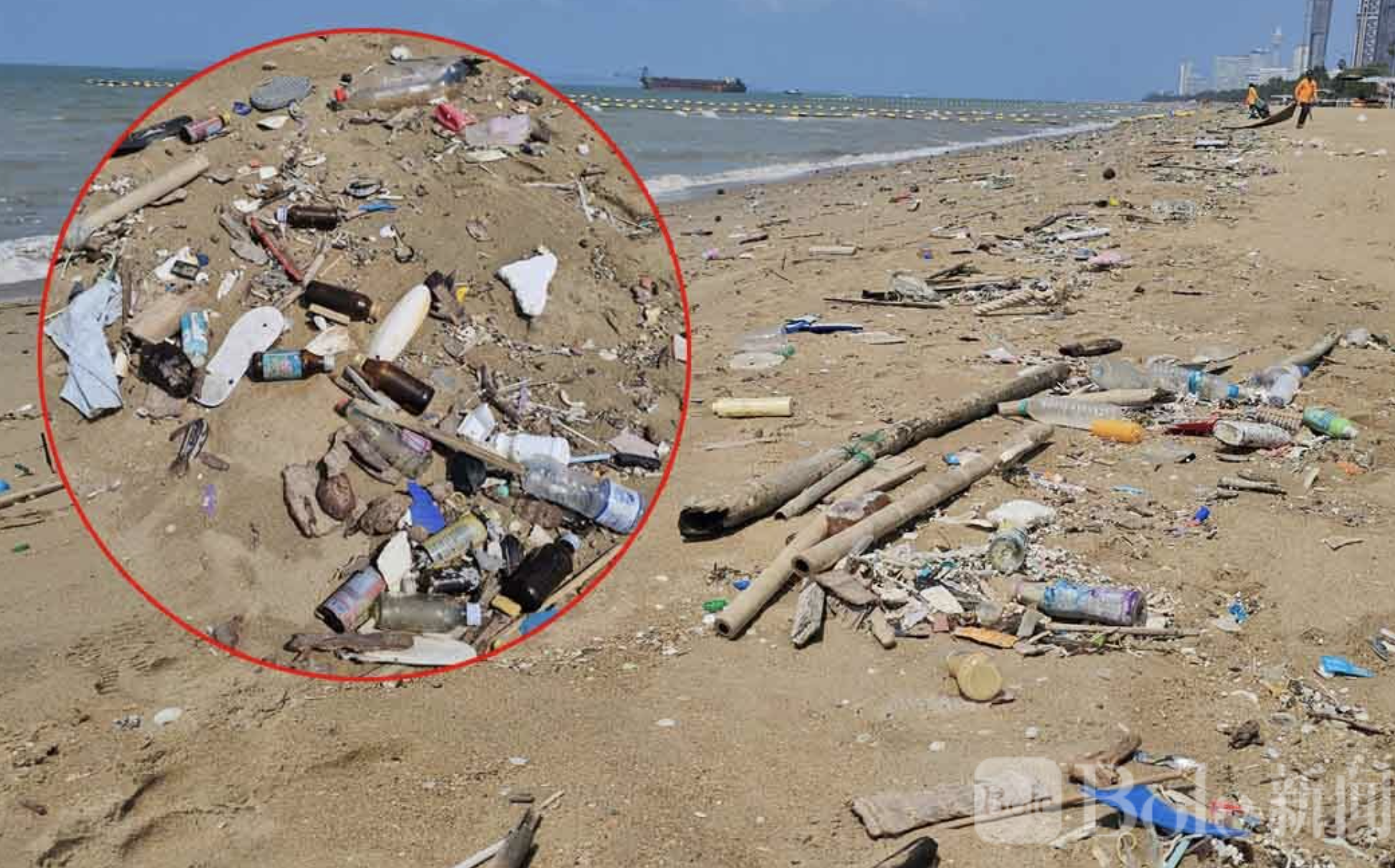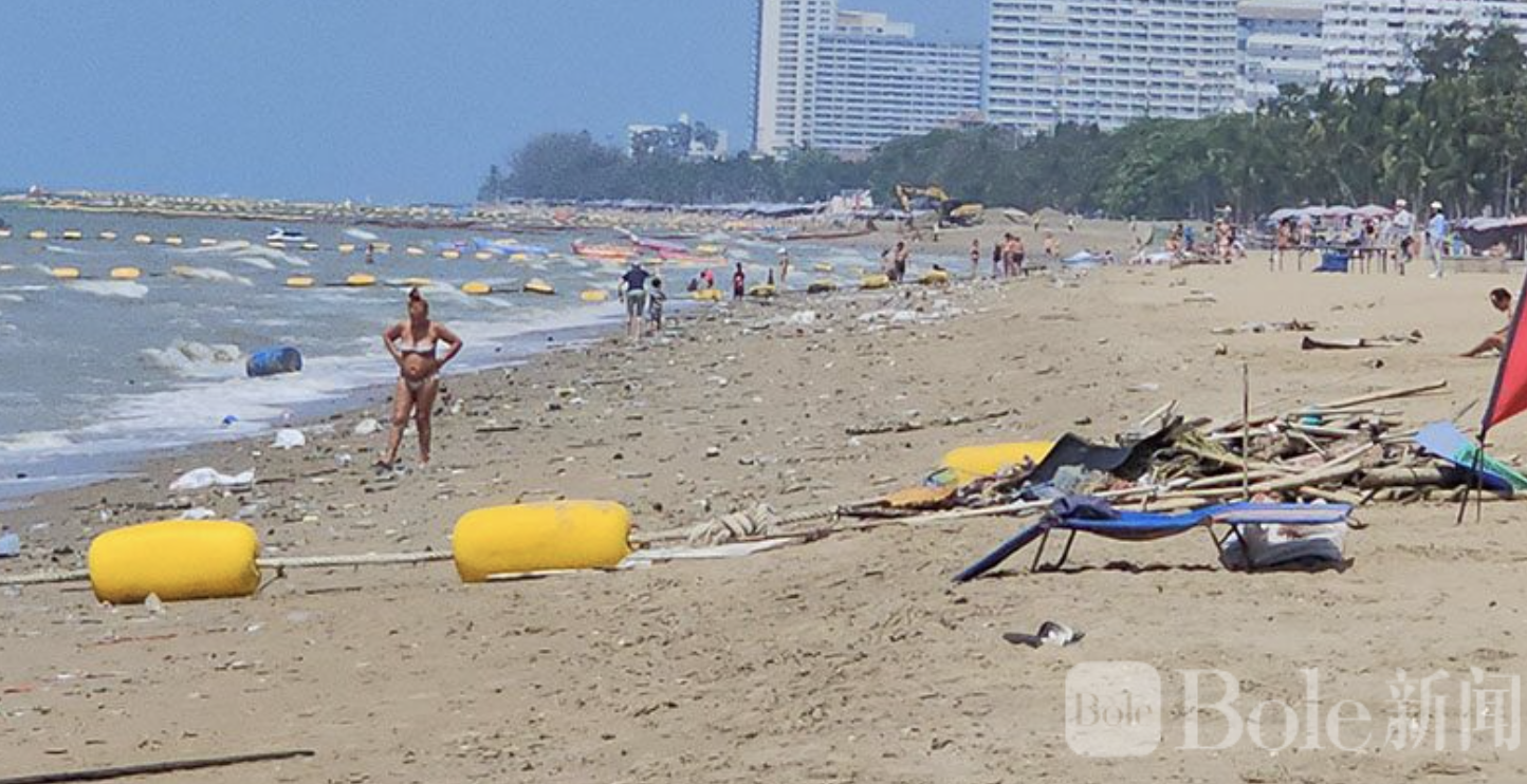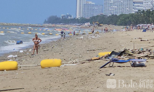 芭提雅海滩垃圾被海浪冲上岸!绵延数公里