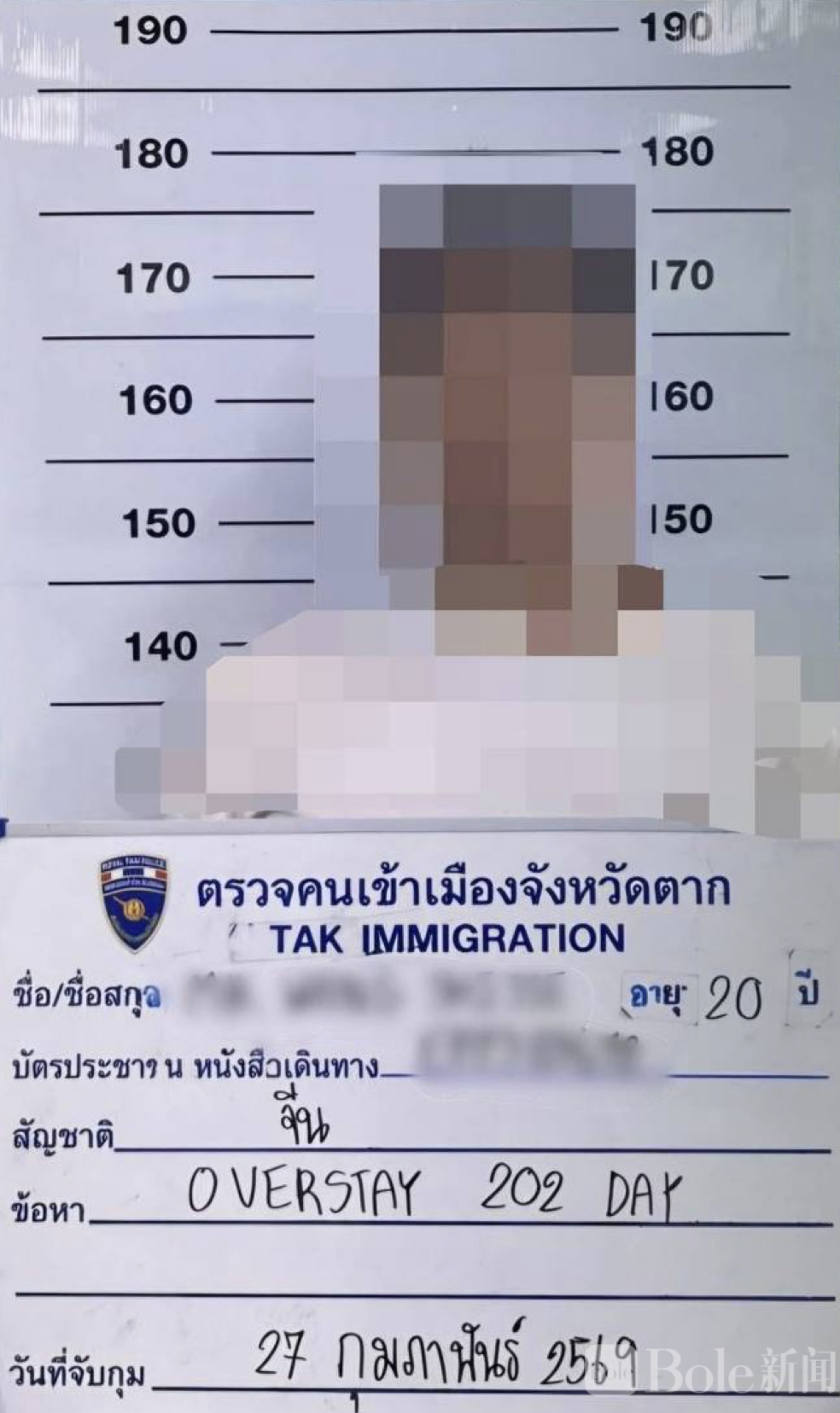 经官方通报,被捕者为一名20岁中国公民,护照号码EPXXXXXX2。执法人员在核查出入境资料时发现,其在泰国的合法停留许可早已到期,却仍继续居留,累计逾期长达202天,已明显违反泰国移民管理相关法规。