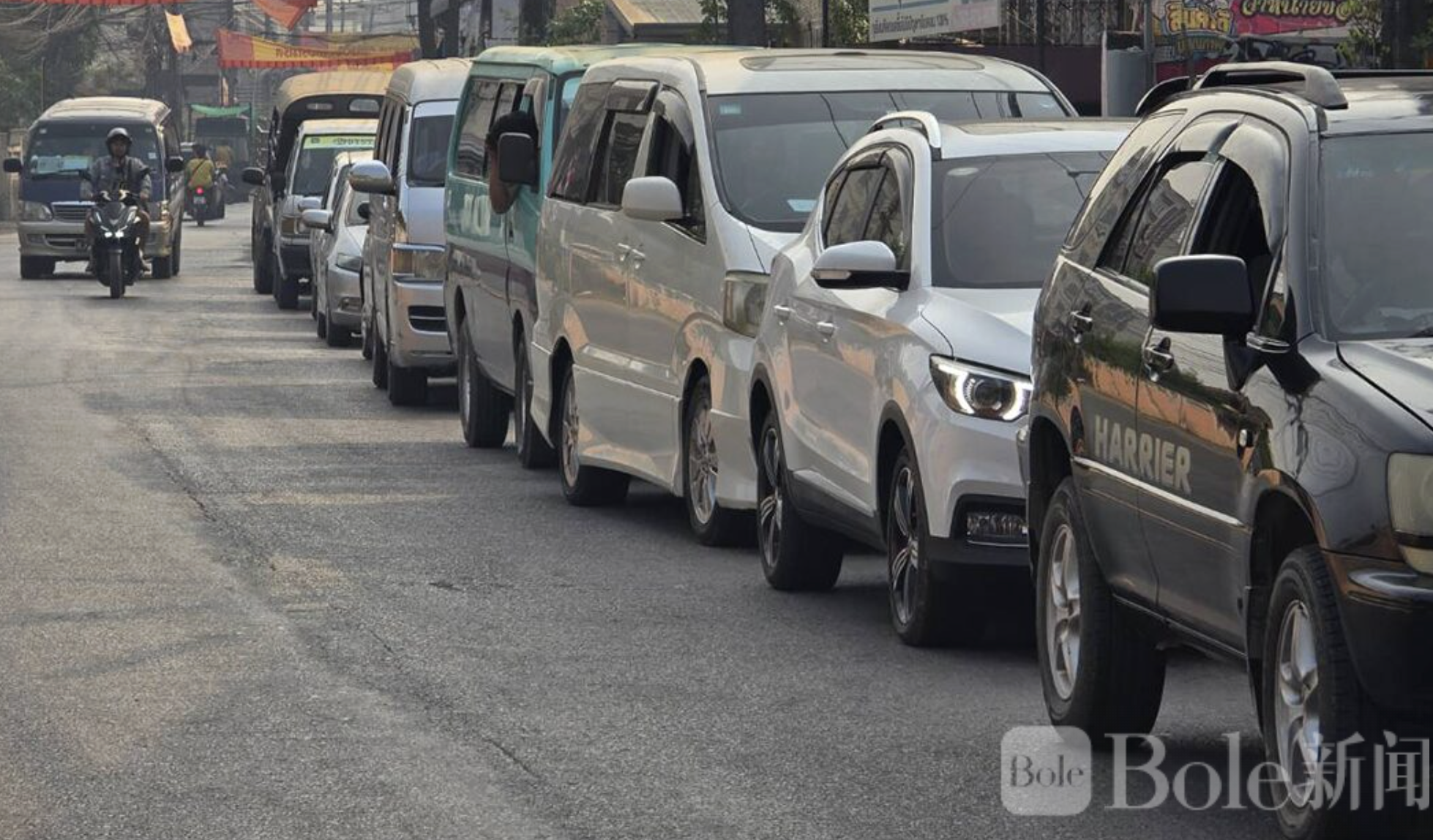 Bole新闻专讯:泰国达府美索县近日出现罕见跨境车潮,大量缅甸民众驾车越境进入泰国排队加油,边境多家油站被挤爆,更出现反复加油再抽出的“循环加油”现象,当局已紧急出手管控。