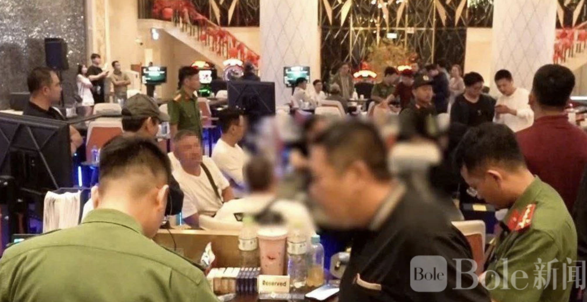 此次行动由庆和省刑事警察部门牵头,多单位联合展开突击检查。警方进入位于酒店地下的“GDC Lucky Club”娱乐场所时,发现多名外国人正进行扑克形式的非法赌博活动。现场除现金外,还查获与赌局运营有关的资料证据。