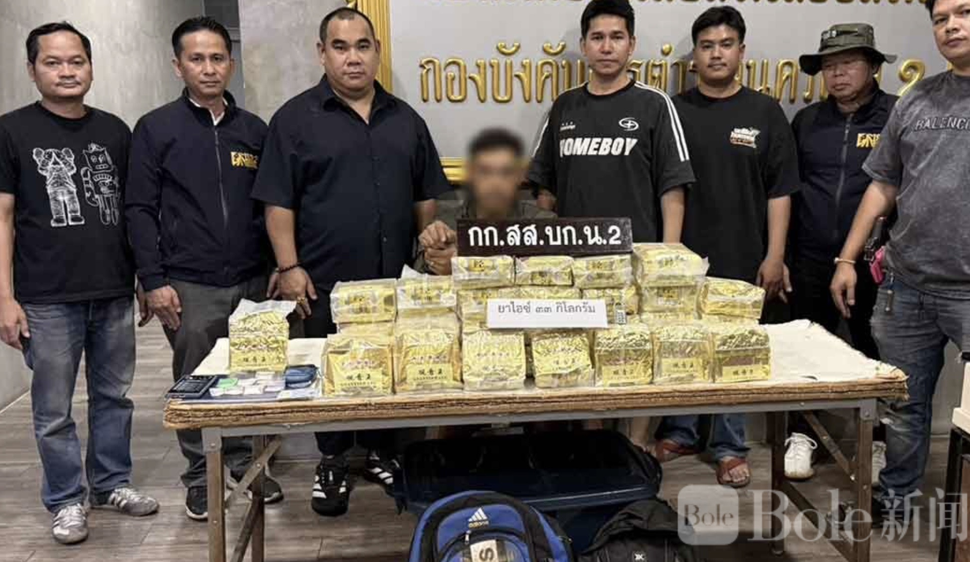 Bole新闻专讯:泰国警方近日展开突袭行动,成功捣毁一条疑似跨国毒品运输链的一环,逮捕一名绰号“Joke”的毒品运输人员,并缴获总计约33公斤冰毒。警方表示,这批毒品疑似从缅甸边境流入泰国,原计划经中转后再运往马来西亚,但还没来得及“上路”,行动就被警方提前截断。