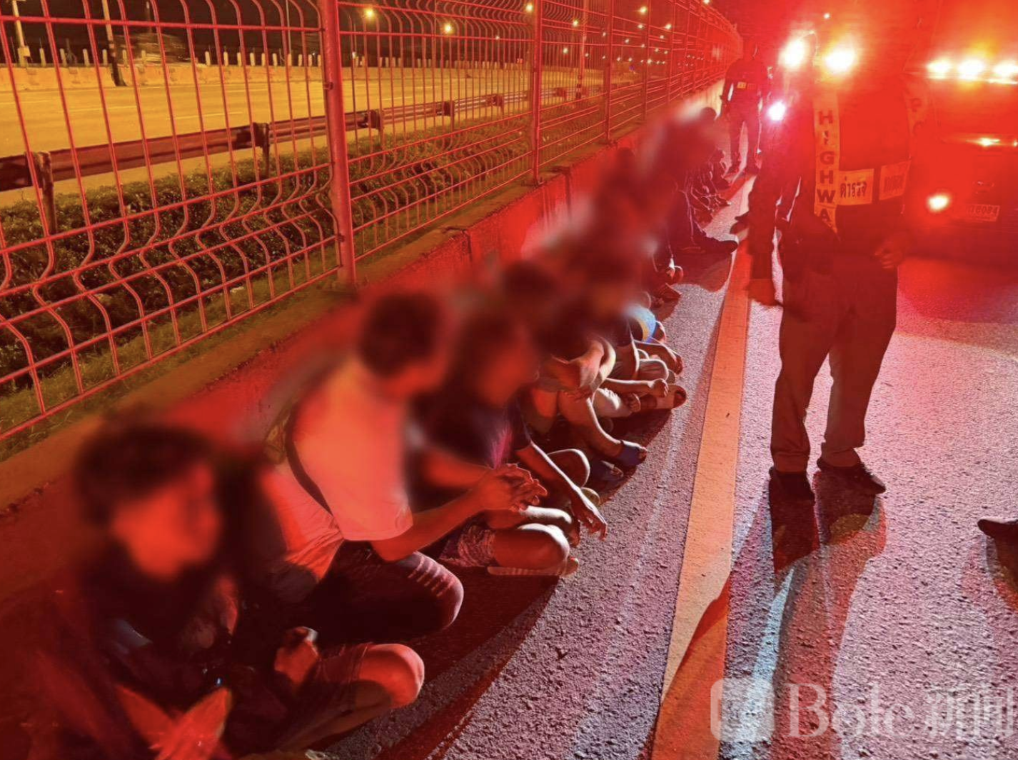 深夜非法飙车被抓现行!!泰国13名飙车族高速狂飙被警围堵