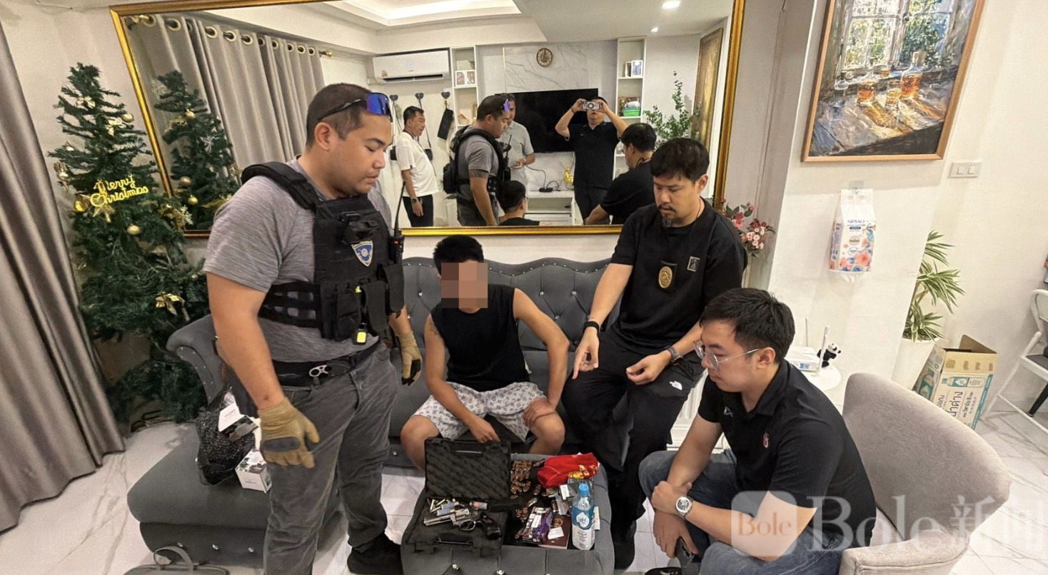 Bole新闻专讯:泰国移民警察第三分局日前在春武里府芭堤雅市展开代号“剪翼超级气球”的突击行动,成功捣毁一处隐藏在民宅中的非法贩卖点,并逮捕一名中国籍男子。警方在现场查获大量“笑气”、毒品及枪支弹药,案件目前正进一步调查扩展。