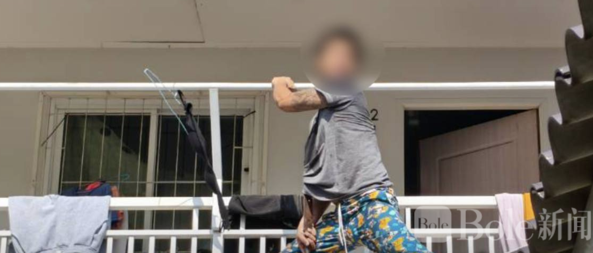 警方赶到后发现,嫌犯仍持刀滞留现场,并爬出二楼阳台边缘徘徊,手持约50厘米长的刀具,一度情绪激动、自言自语,甚至将刀对准自己胸口。由于现场环境封闭且情况危险,警方选择与其展开长时间谈判,避免发生更严重后果。