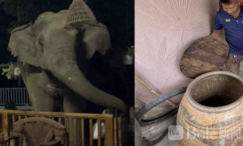 Bole新闻专讯:泰国北柳府(差春骚府)一处民宅近日上演惊险一幕——一头体型庞大的野生大象深夜闯入厨房,不仅破门而入,还在屋内“翻箱倒柜”寻找食物,最终连一整缸大米都被吃了个精光,现场一片狼藉。