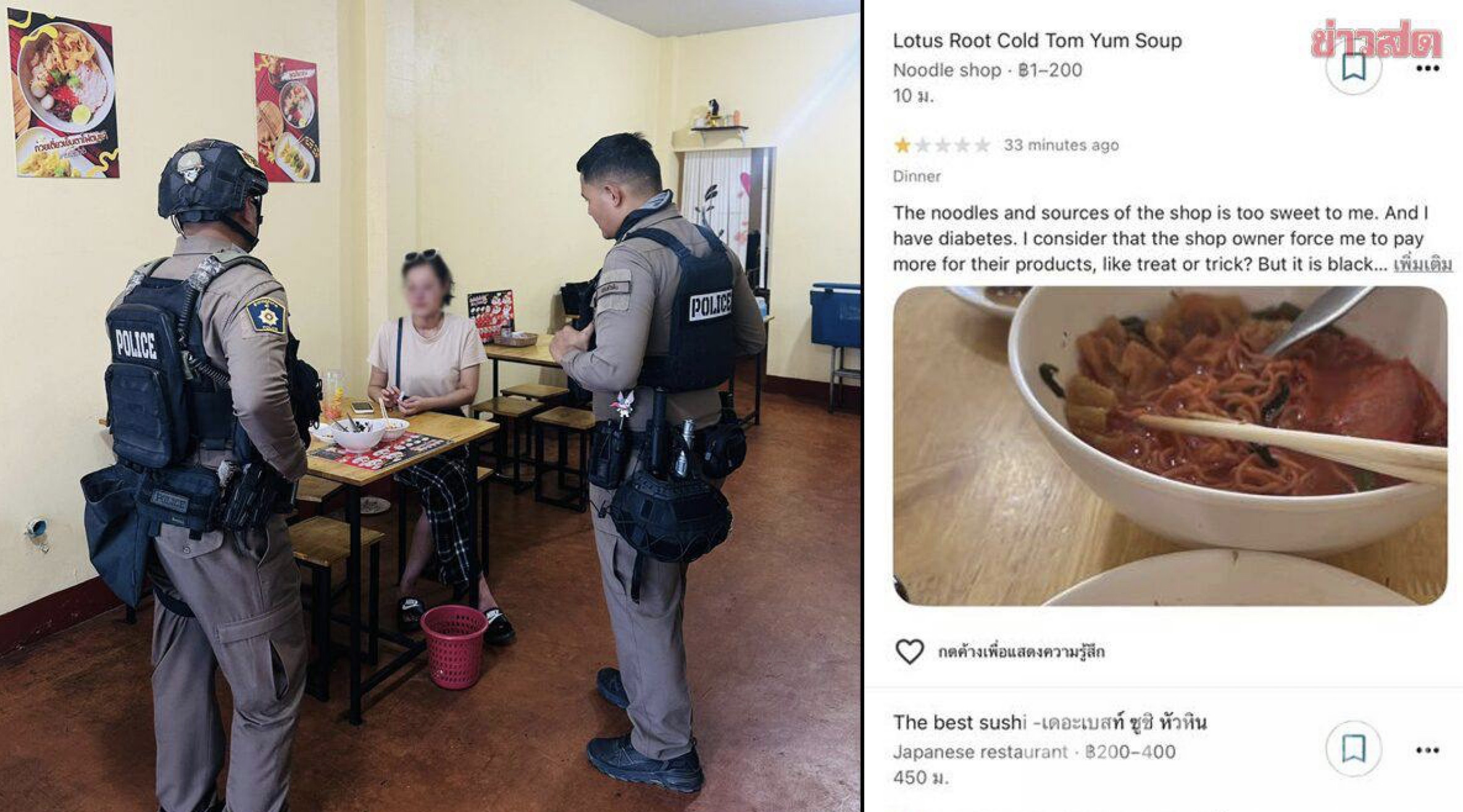 中国女游客泰国“吃霸王餐”,恶意刷1星评价被警方介入!