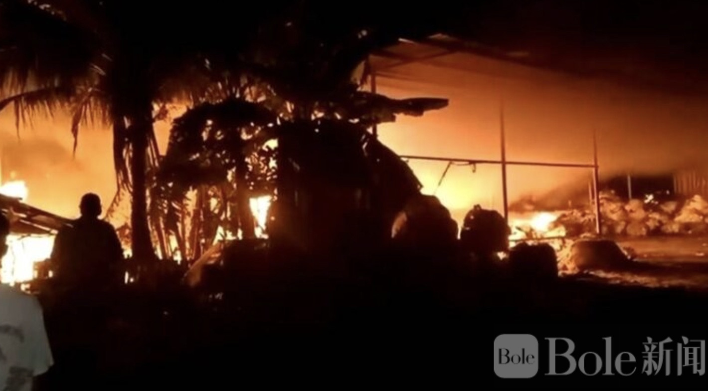 Bole新闻专讯:泰国罗勇府一处回收工厂25日凌晨突发火灾,火势一度失控,伴随着接连不断的爆炸声,现场火光冲天、浓烟翻滚,救援人员鏖战一个多小时才勉强将火势压制住。